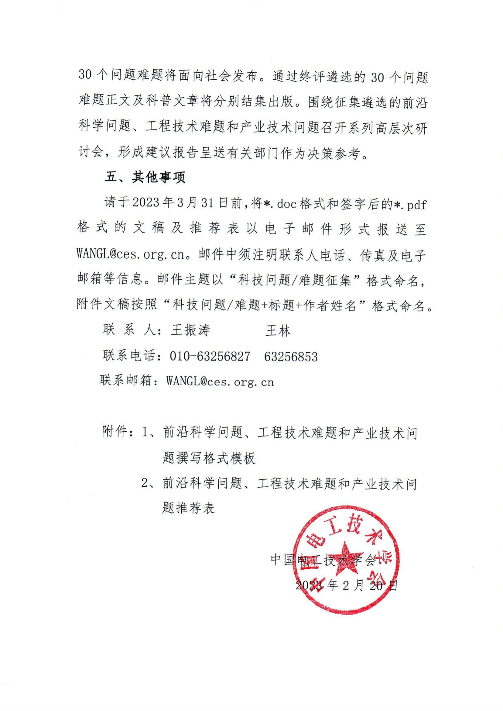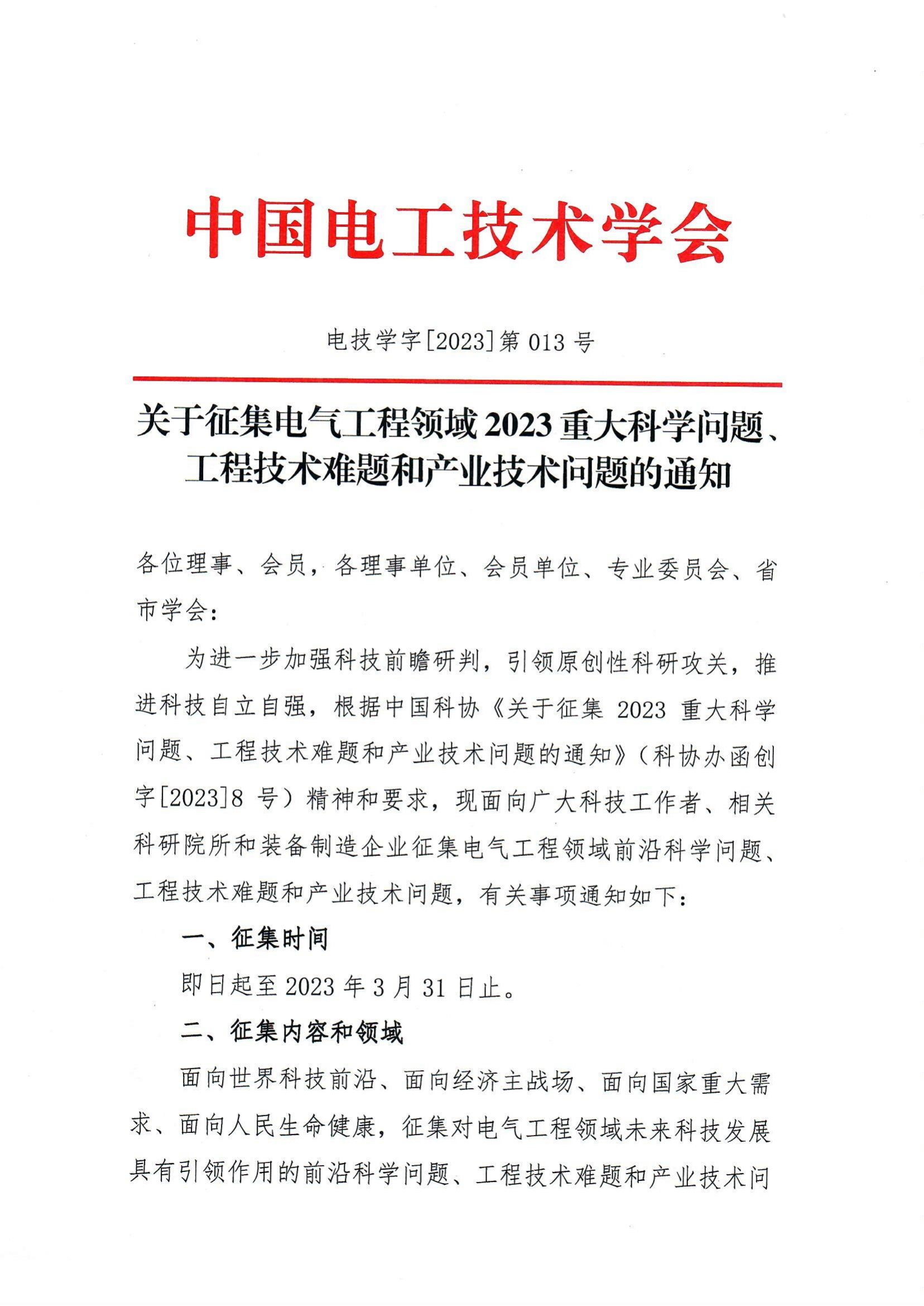 關于征集電氣工程領域2023重大科學問題、 工程技術難題和產業技術問題的通知
